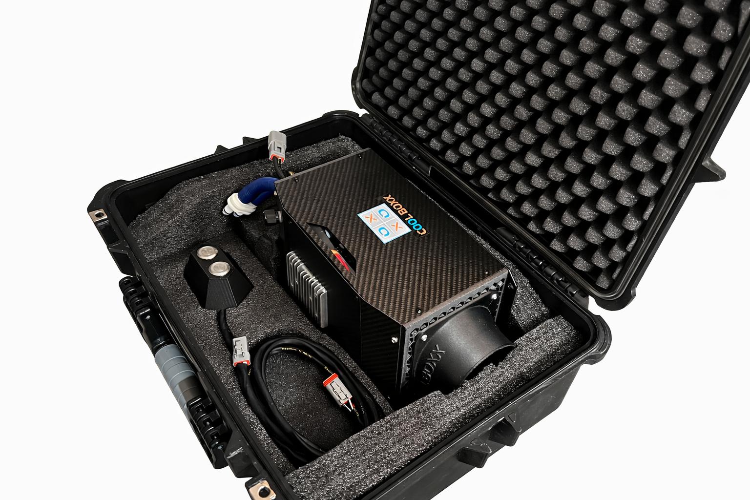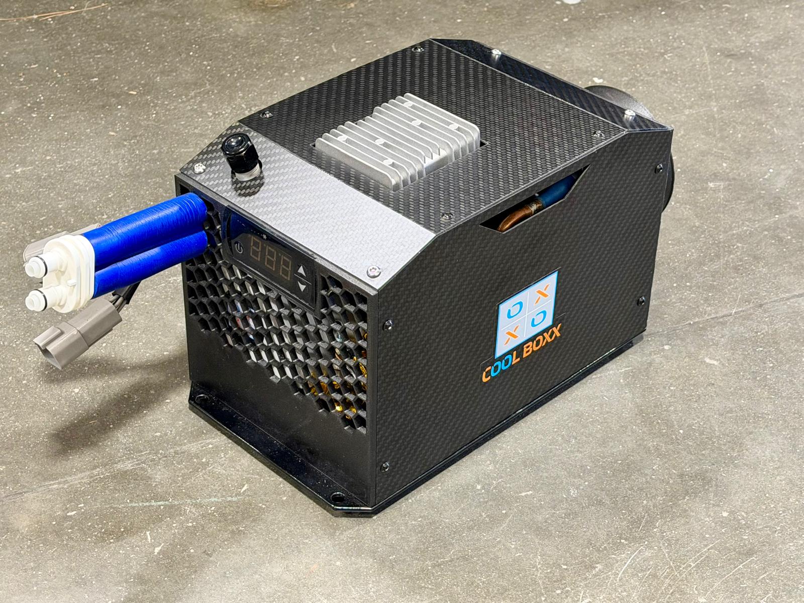The revolution of the evolution Cool Boxx for all of your personal cooling needs inside your race car with a smaller footprint and in a Carbon Fiber case. Control your temperature down to the degree so you are always comfortable. No ice necessary. Just plug in, push the button, and stay cool for as long as you need.